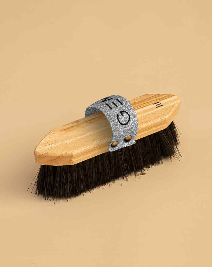 C’est la brosse à utiliser en fin de pansage, pour peaufiner et faire briller de mille feux Ouragan.