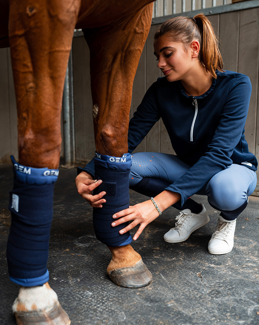 Ces flanelles en mousse à mémoire de forme s'adaptent parfaitement au membre du cheval.