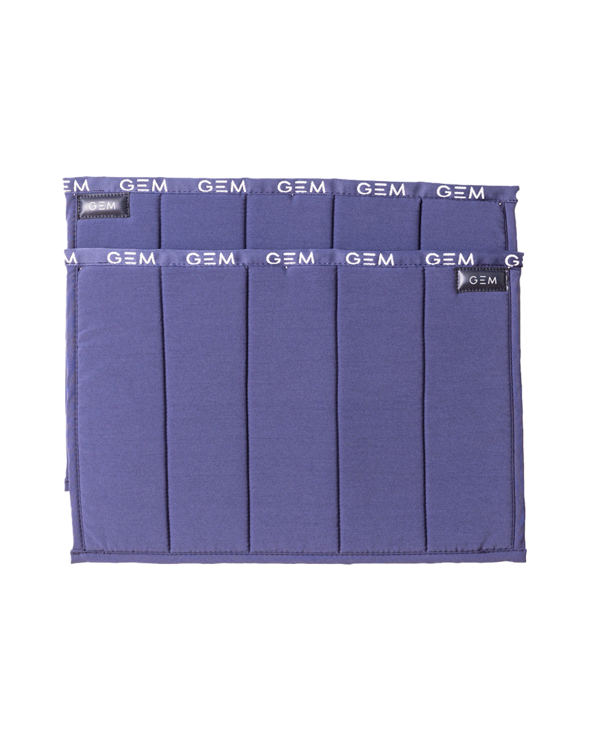 Logos GEM en répétition sur le haut de chaque flanelle.