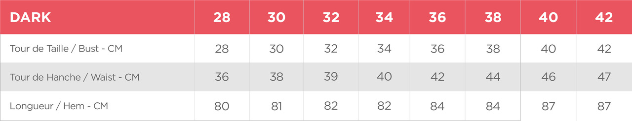 Nous vous conseillons de prendre une taille en dessous de votre taille habituelle.