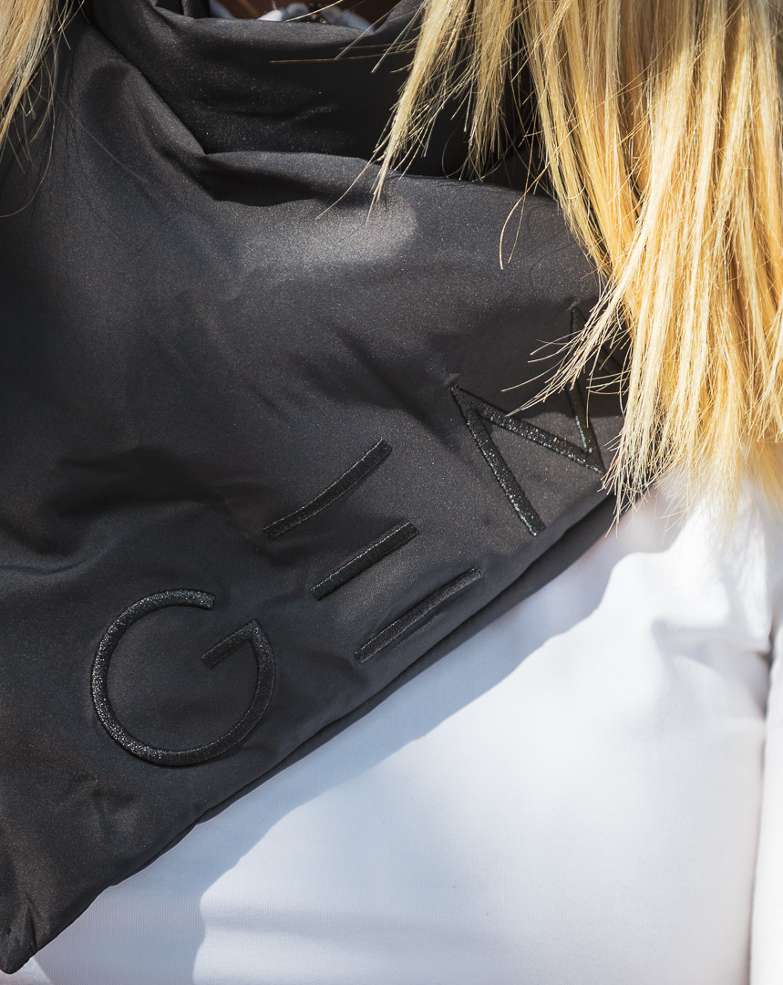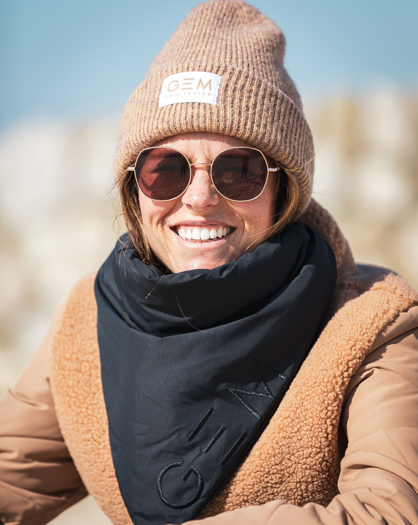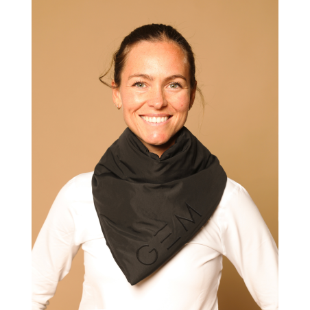 Logo GEM ton sur ton sur le bord de l’écharpe.
