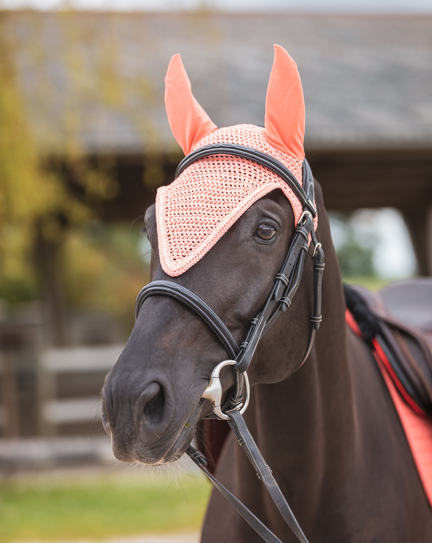 Le bonnet Léo avec sa bande corail fluo qui rappelle le logo GEM en silicone du tapis Léo. Le bonnet est disponible en corail, bleu marine noir et prune.