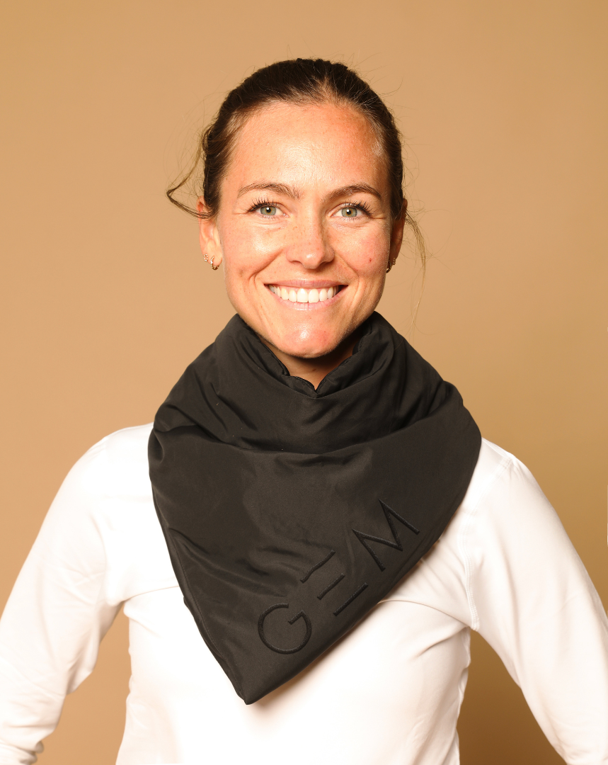 A scarf made of ultra-comfortable, warm, and soft puffer material.