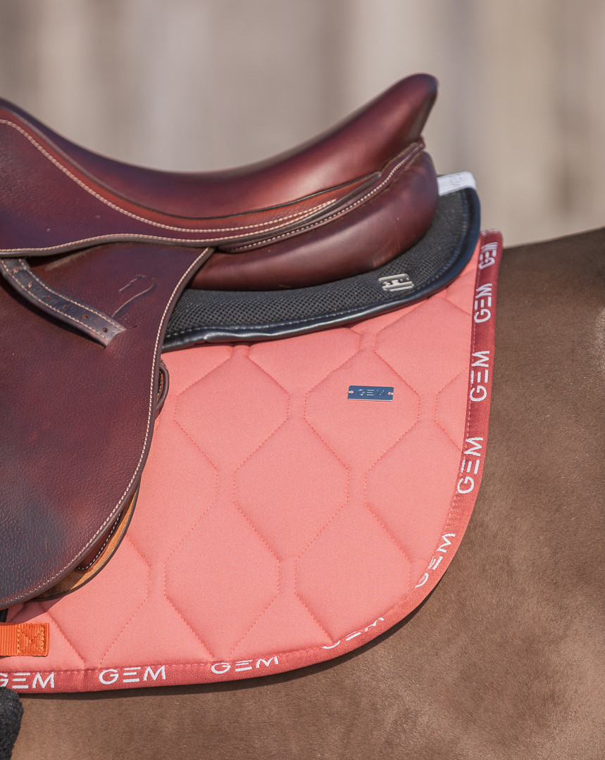 Our LOVE GEM saddle pad is definitely a style that adapts to our value of “performance” with its sport design and repeated GEM logo. It’s a new unique style that is 100% in cotton fabric.