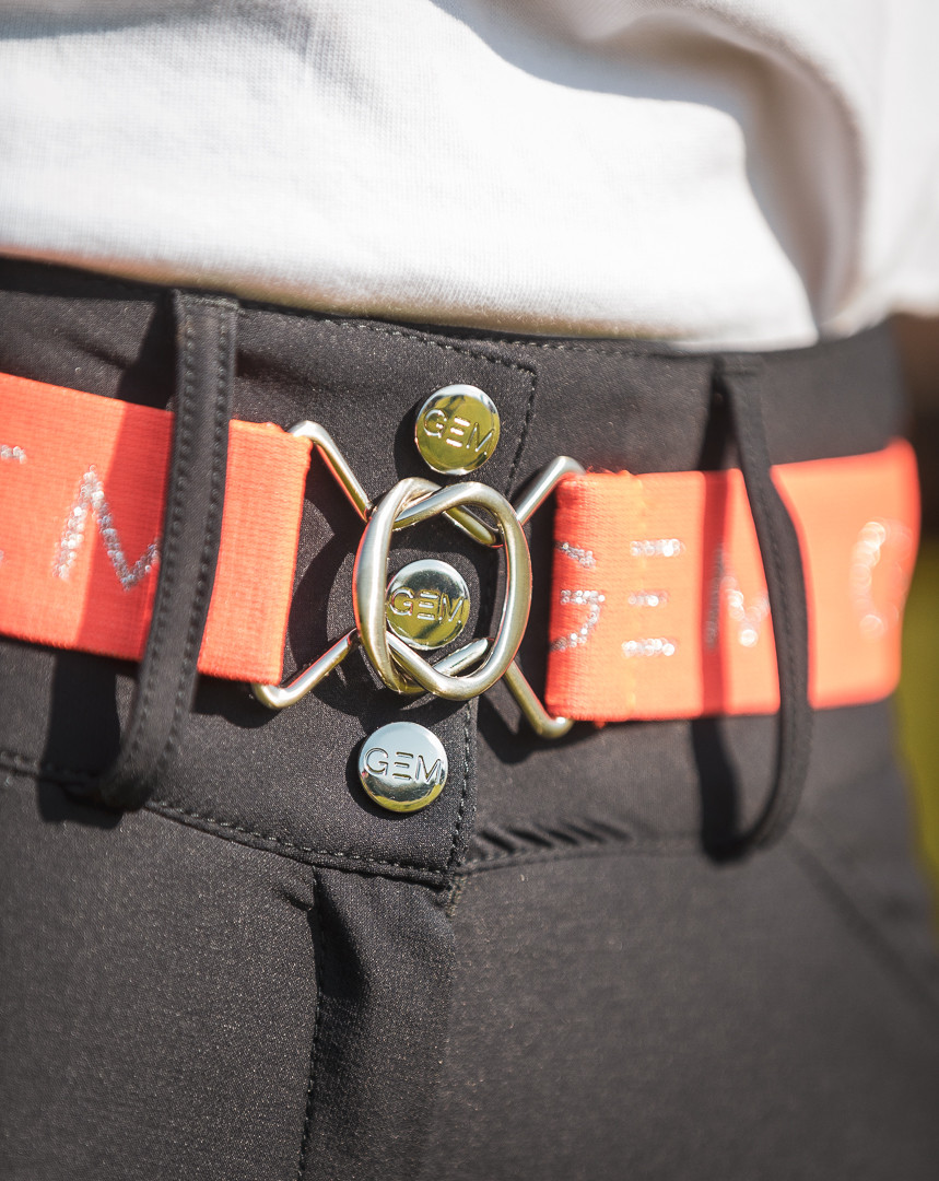 Repetition of GEM logos all along the belt. Suitable for wearing in the city or at the stables.